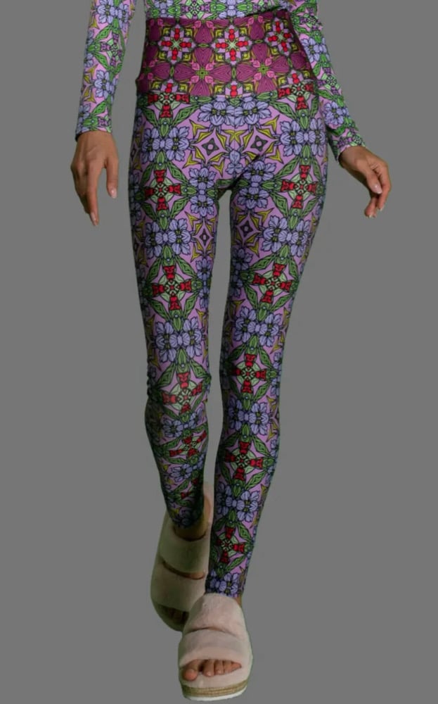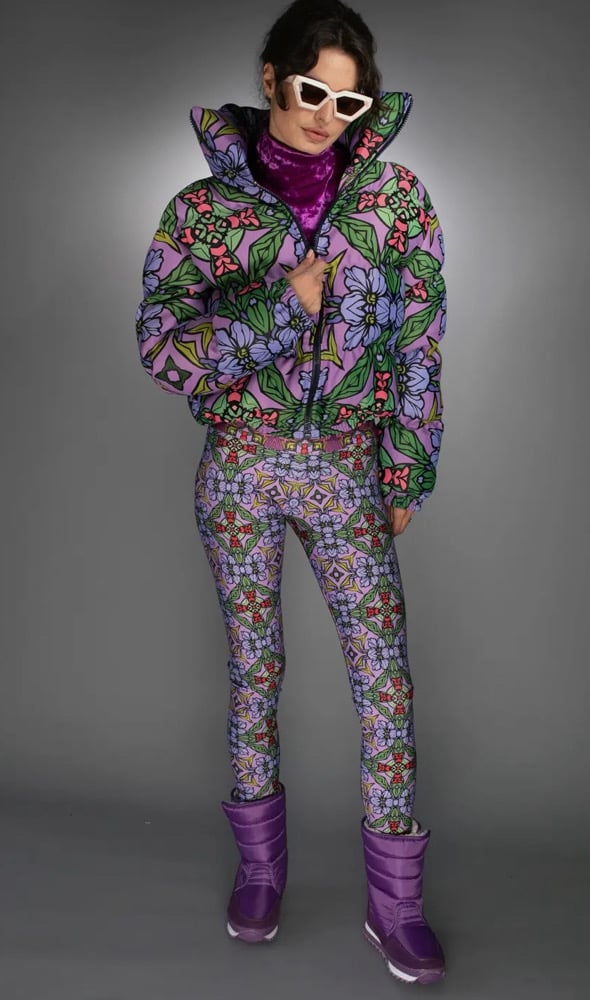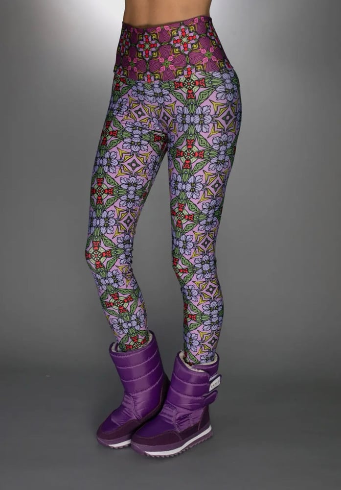 These leggings match our Lilly Puffer. Talk about hitting the slopes or city streets in style. This abstract design with these shapes and botanic illustrations will set you high in the fashion chain. High waisted, eco poly lining for extra warmth, full leg, strechy and comfy fit