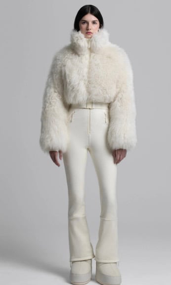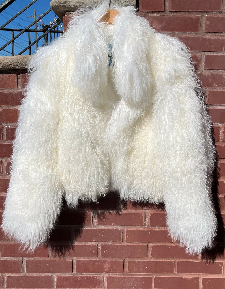 The Norway Jacket defines luxury resort/ski wear or high fashion streetwear. Norway has a collar, 2-side pockets and silver high quality fur hooks. This beautiful genuine mongolian lamb jacket has warmth, sophistication all while serving runway vibes.