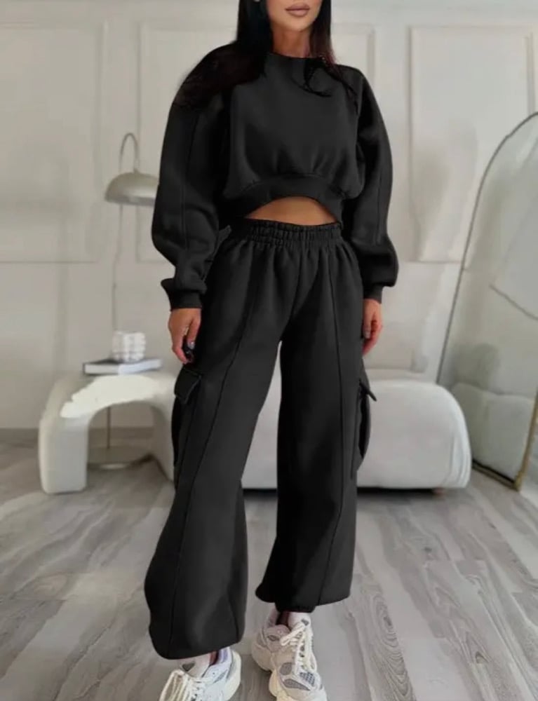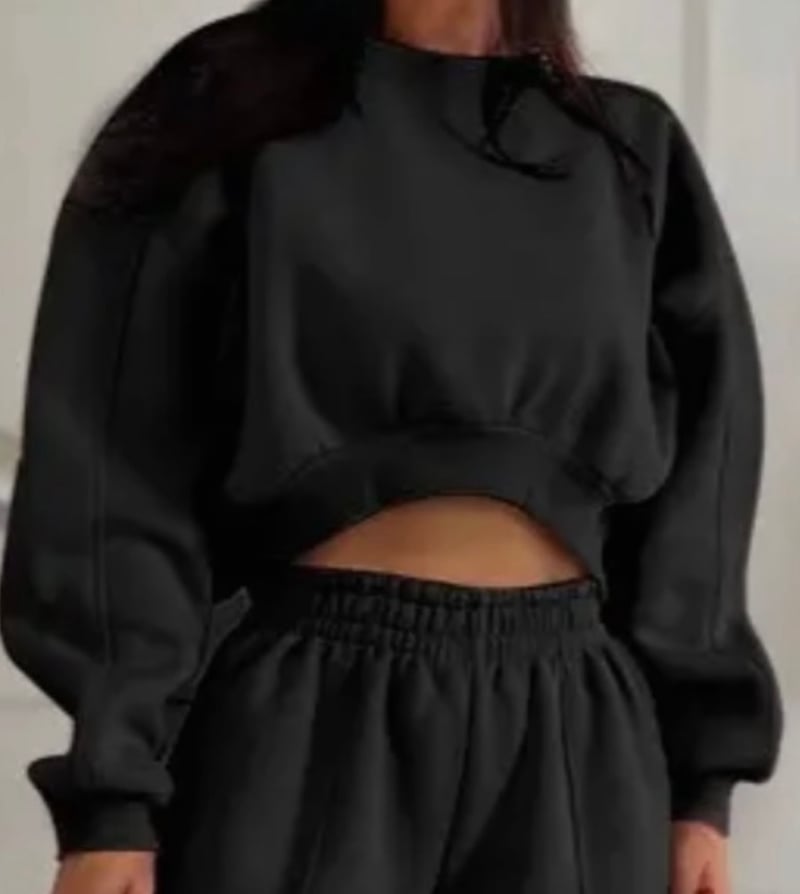 Twinkle has all the bells and whistles for a jogger set. Loose fit cropped long sleeve top. Deep cargo side pockets, front side and back pockets, elastic high waist and ankles. The fit is loose & comfy but a cute sexy fit. Fleece lined and extra warm